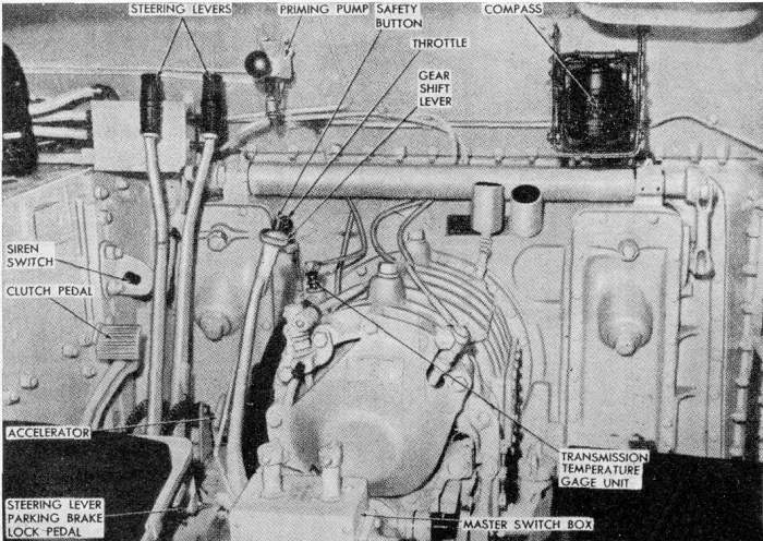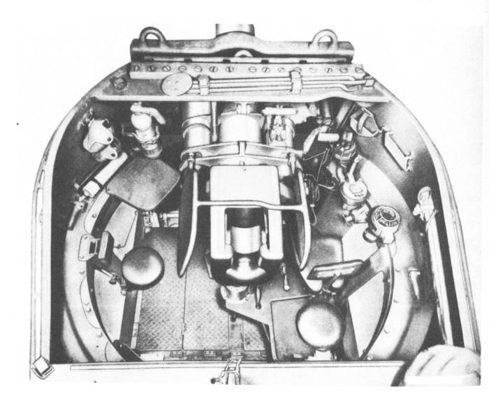 destra del posto di guida era sistemata la bussola (compass). |