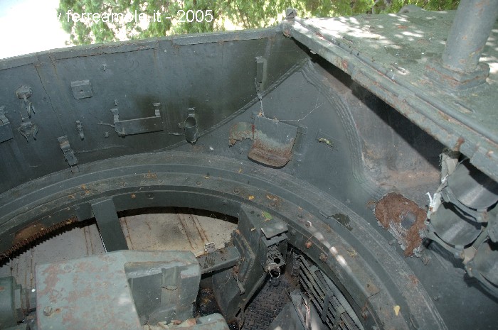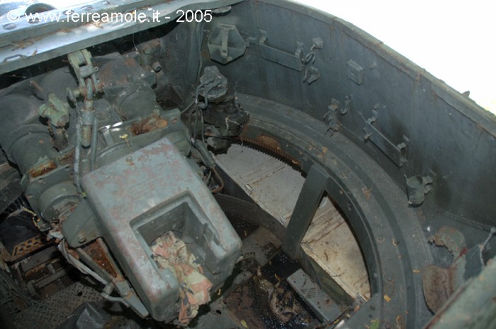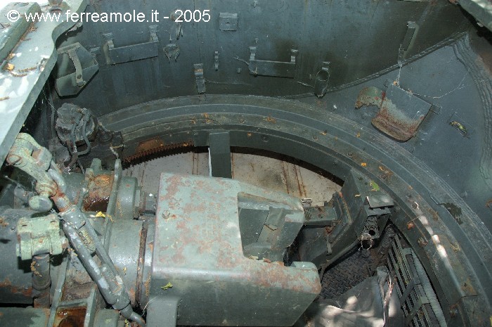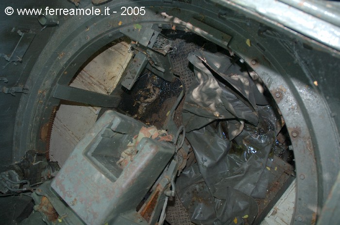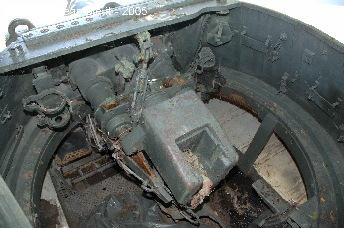 dell'interno della torretta che mostrano i vari congegni di mira e di azionamento del