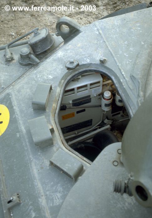 telefono con il quale la fanteria può comunicare con l'interno del carro. Subito sopra ad