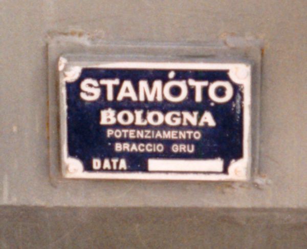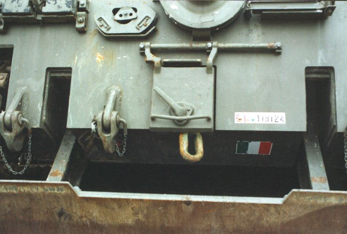 La targhetta posta sul lato destro del gancio di traino posteriore indicante lo stabilimento che ha eseguito i lavori per il potenziamento del carro recupero