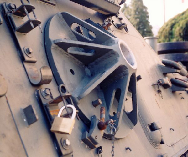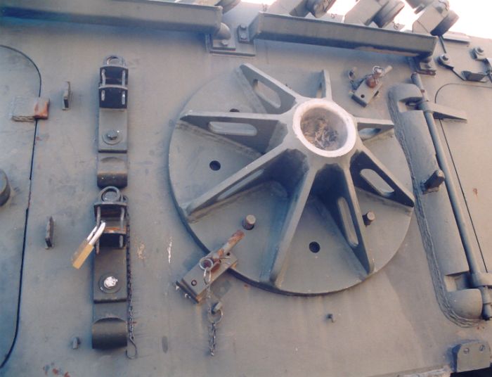 Due immagini della citata piastra d'appoggio. Il suo posizionamento ha determinato la completa revisione della disposizione delle attrezzature disposte sulla fiancata del carro.