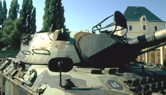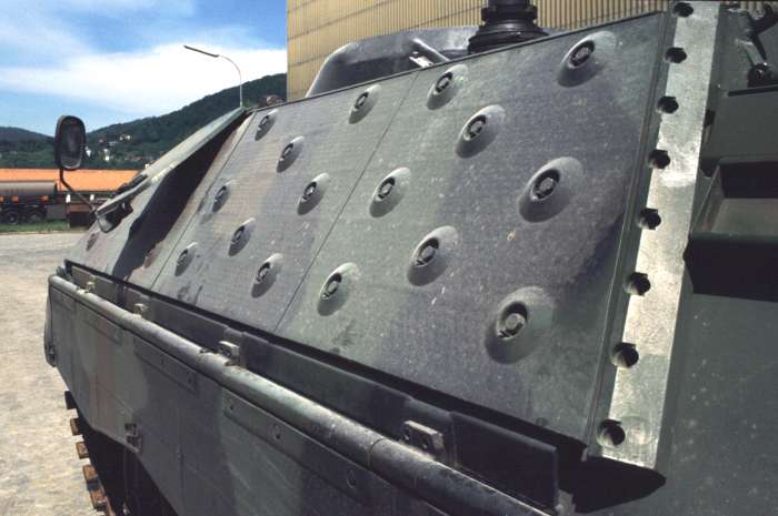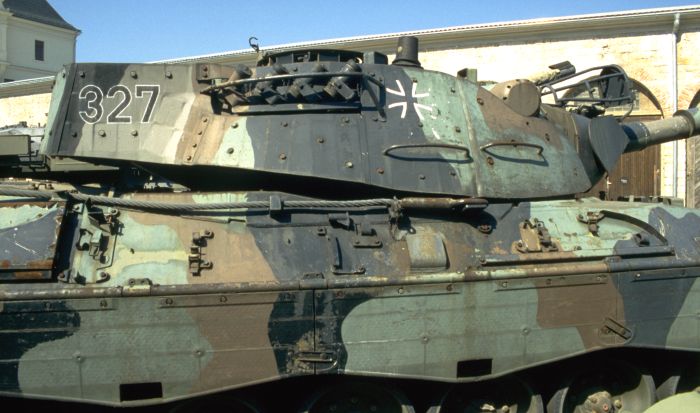 Due altre immagini delle corazze questa volta installate su di un Leopard 1A2 appartenuto all'Esercito Tedesco ed ora conservato al Museo Militare di Dresda. Si noti sopra lo scudo del cannone la protezione metallica del visore passivo PZB-200 (Passive Ziel- und Beobachtungsgerät) in sostituzione del classico proiettore a luce bianca/IR.