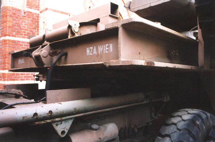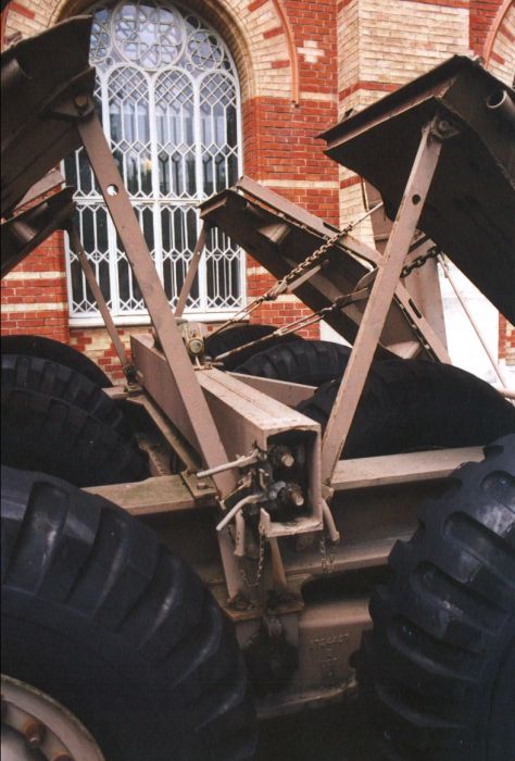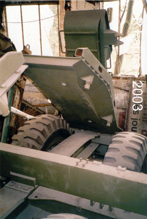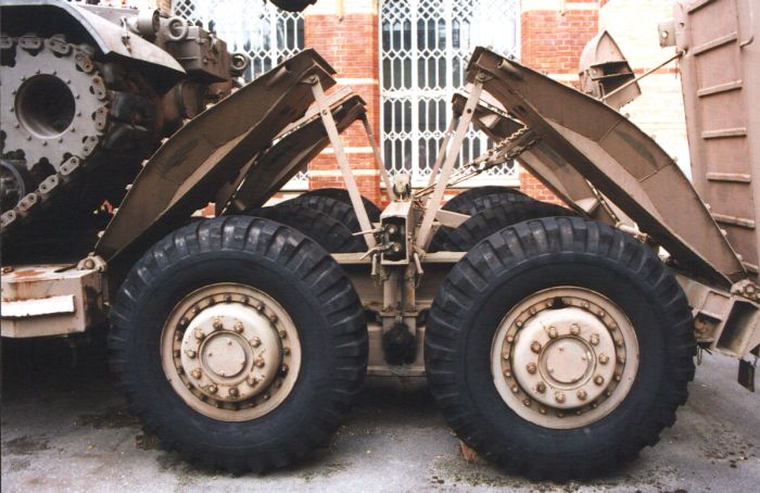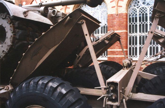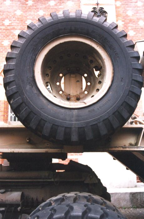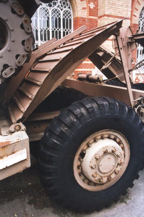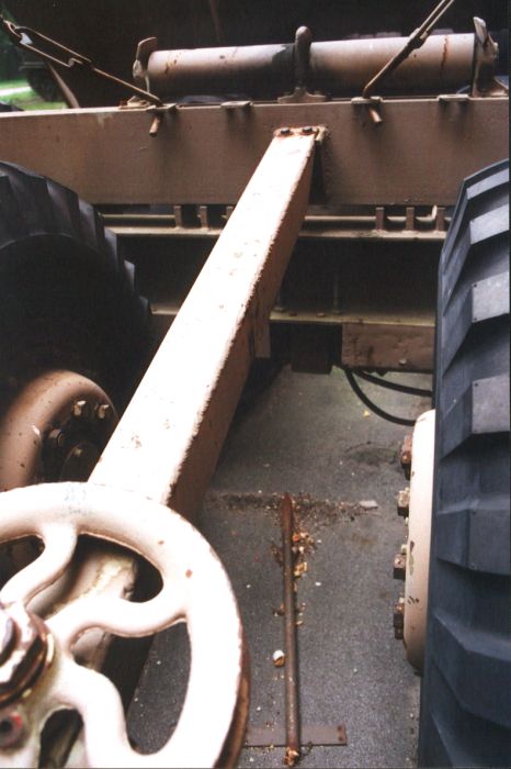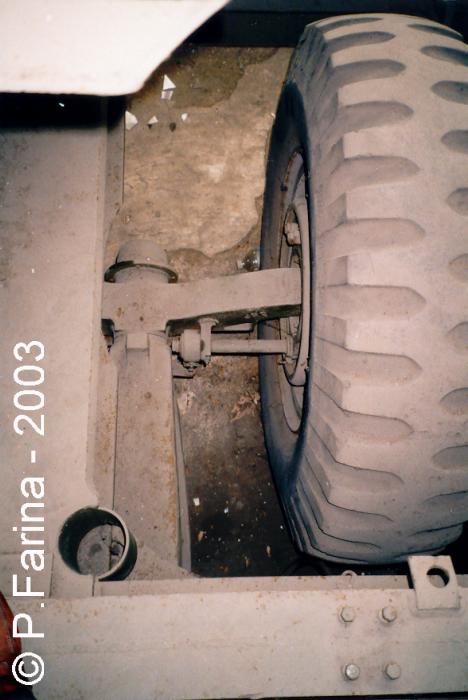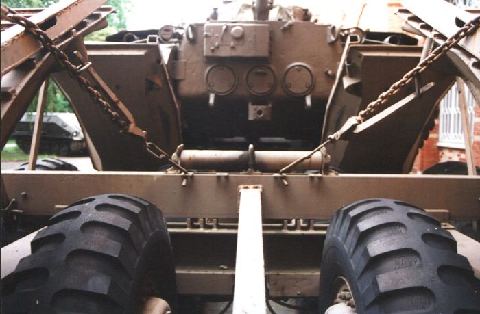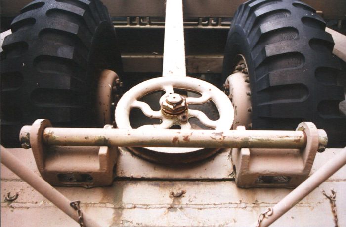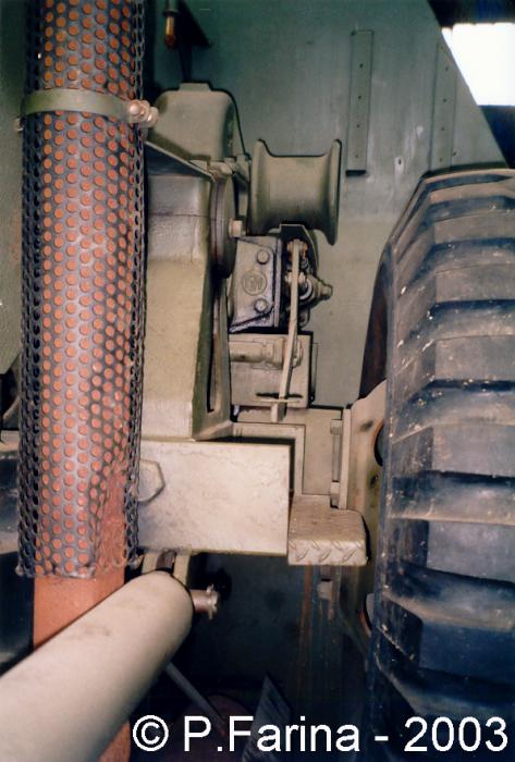 Il supporto della ruota di scorta del trattore e sul semirimorchio. La ruota di scorta del semirimorchio non era presente sulle versioni M15 ed M15A1. |