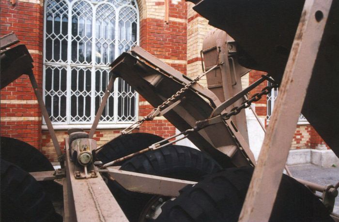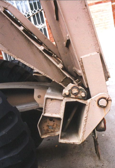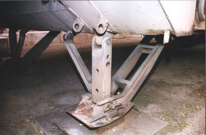 Una delle due gambette sulle quali posava il semirimorchio quando era sganciato dal trattore. Il loro movimento avveniva interamente a mano. |