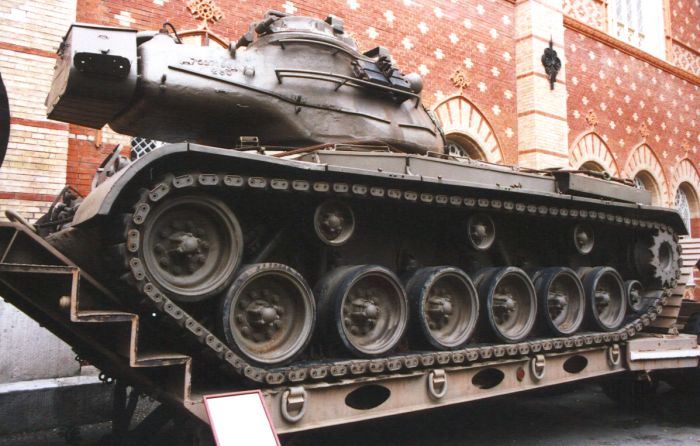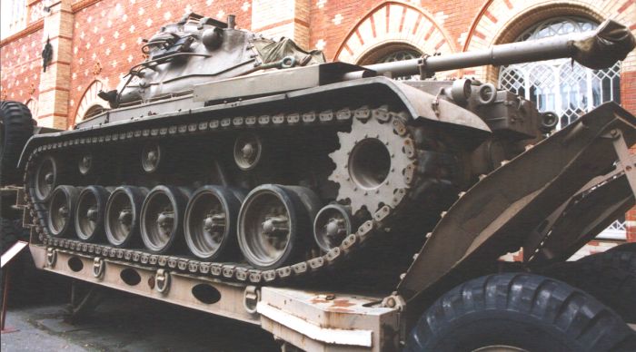 | Due immagini del carro M47 caricato sul semirimorchio. |