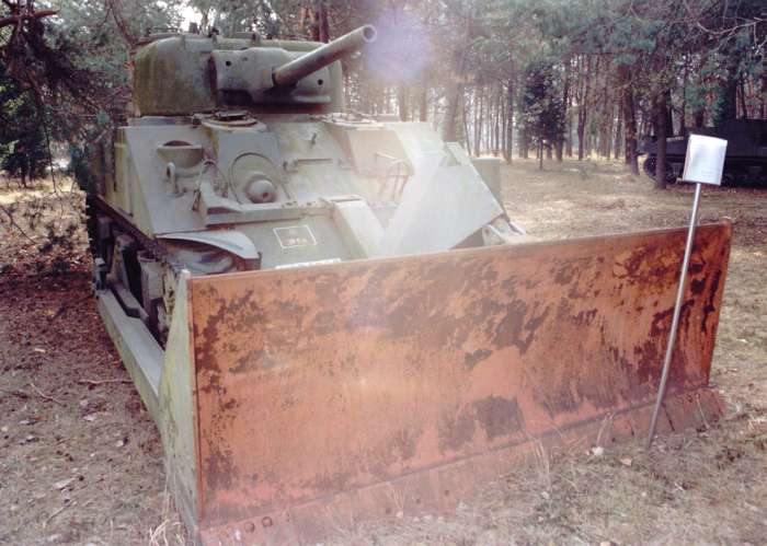I primi esperimenti per installare una lama bulldozer su di un carro armato iniziarono nel